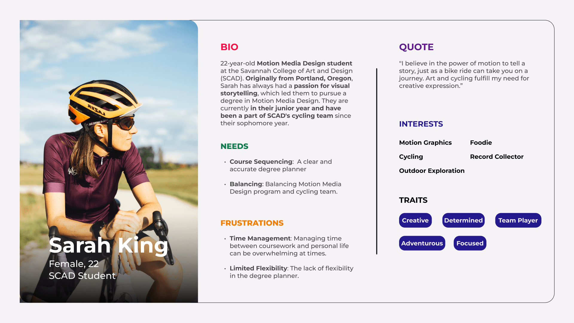 Sarah King represents our understanding of dedicated students seeking to enhance their academic journey through a more efficient degree planner.